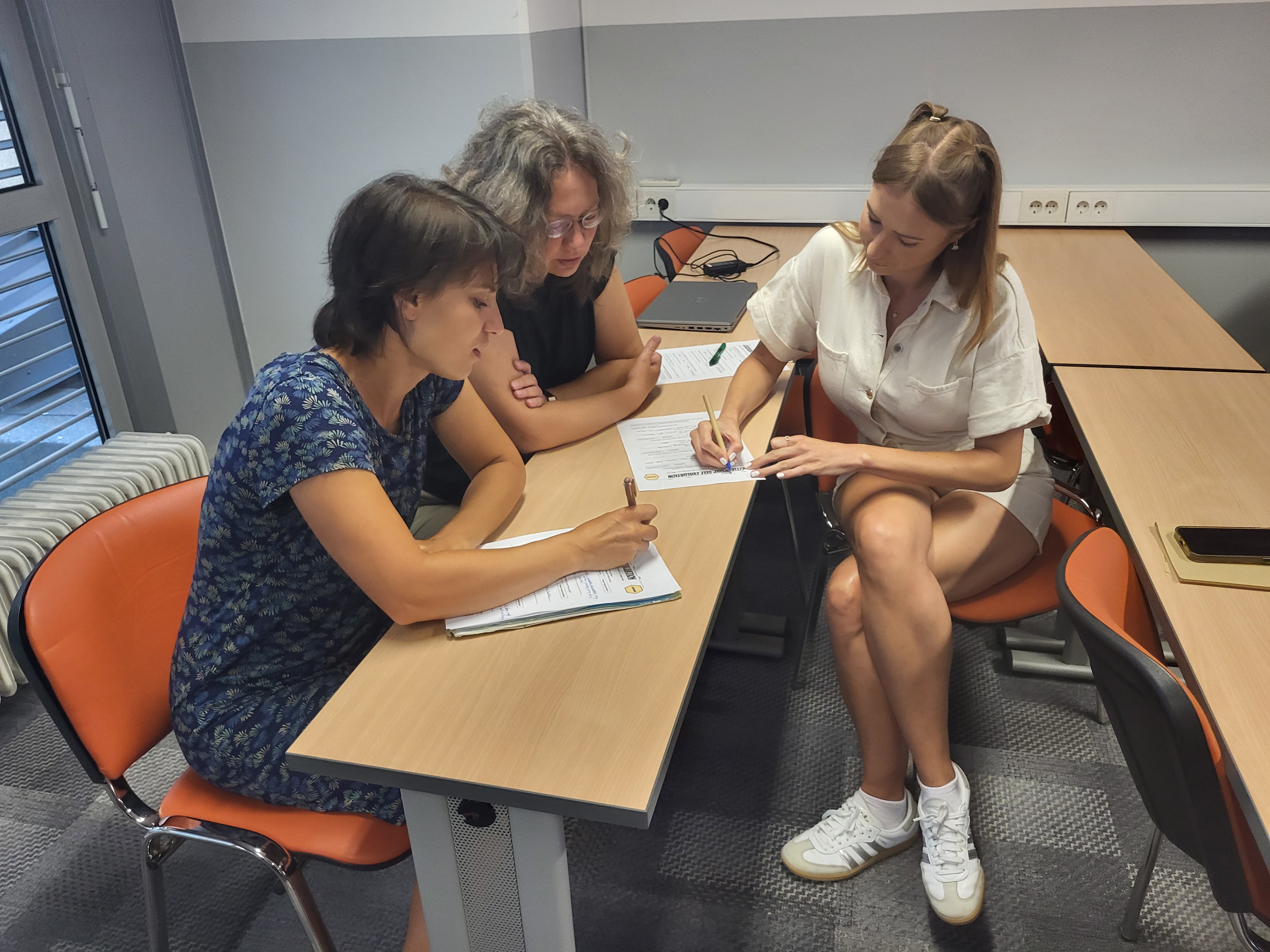 Mokymų metu išbandėme praktines užduotis, kurios padeda lavinti gebėjimą veikti komandoje, kūrybiškai spręsti problemas bei atsakingai priimti sprendimus. Šios veiklos itin pritaikomos suaugusiųjų švietime, nes remiasi dalyvių patirtimi, skatina tarpusavio diskusijas bei suteikia galimybę mokytis vieniems iš kitų.
