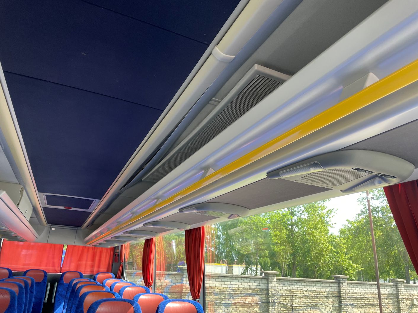 1. įranga – 46 sėdimos vietos, borto kompiuteris, pastovaus greičio palaikymo sistema, kondicionierius, radijas, el. reguliuojami veidrodėliai, tualetas, staliukas, du monitoriai, gido sėdynė, sėdynės su diržais;