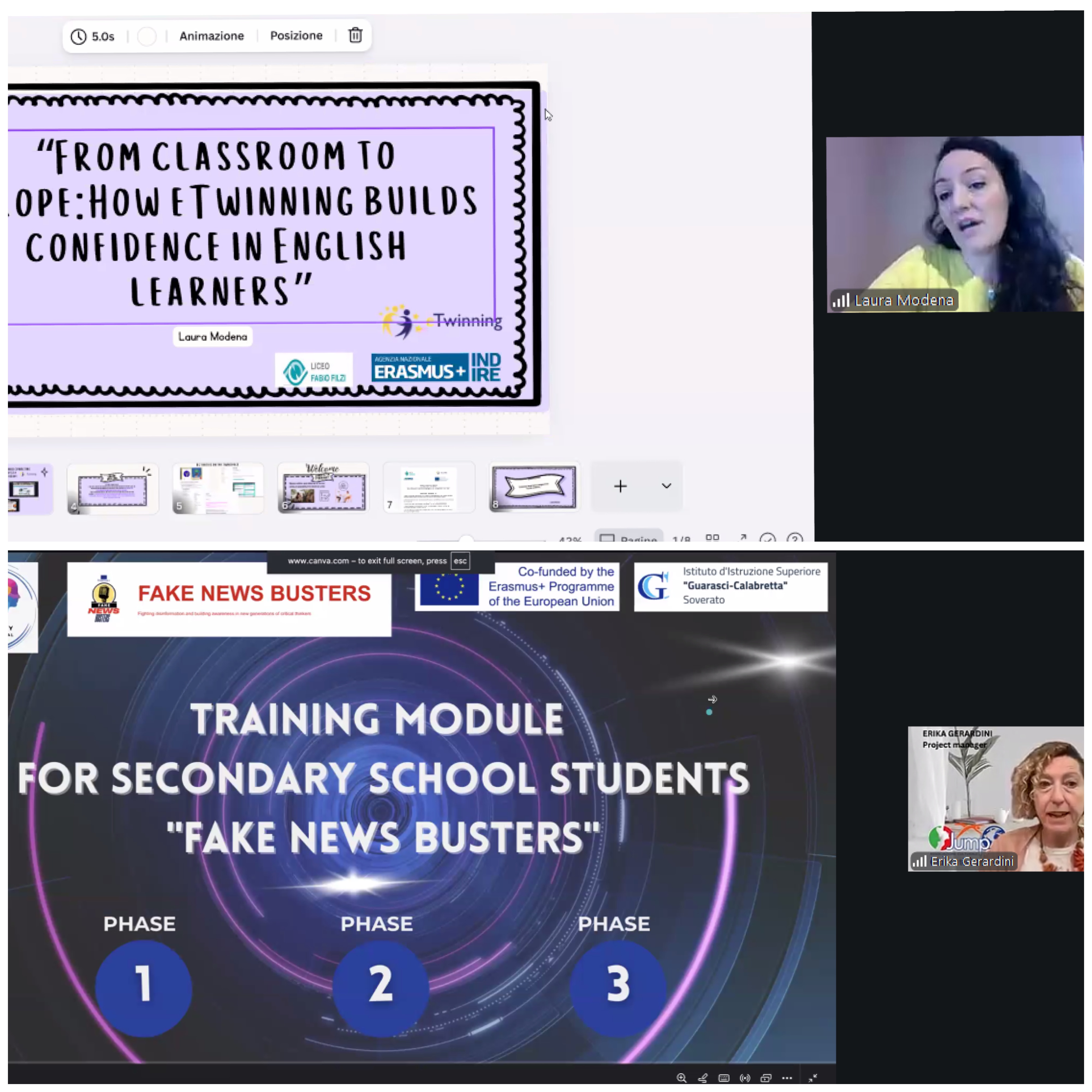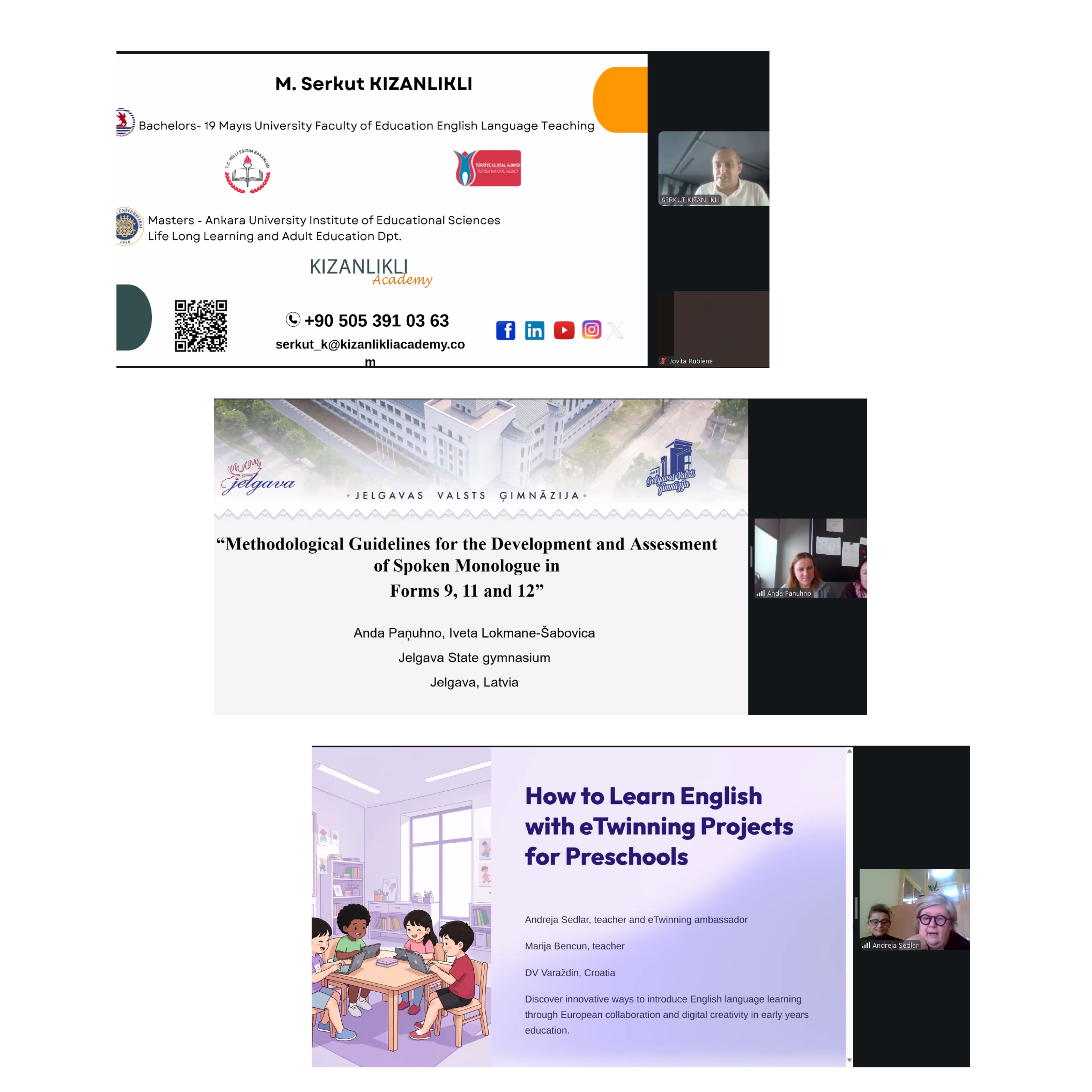 Konferencijos darbas prasidėjo plenariniu posėdžiu, kuriame pranešimus skaitė pedagogai ir švietimo ekspertai iš įvairių užsienio šalių. Cinzia Perniola (Italija) analizavo, kaip dirbtinis intelektas ir skaitmeninės medijos gali padėti stiprinti mokinių skaitymo motyvaciją ir vaizduotę, ypač dirbant su daugiakalbiais mokiniais. Erika Gerardini (Italija) aptarė medijų ir informacinio raštingumo ugdymą dirbtinio intelekto amžiuje, akcentuodama kritinio mąstymo svarbą ir kovą su dezinformacija. Laura Modena (Italija) pristatė eTwinning projektų patirtis, atskleisdama tarptautinio bendradarbiavimo naudą stiprinant mokinių pasitikėjimą savimi ir anglų kalbos kompetencijas. Edita Roberts (Čekija) dalijosi praktiniais dirbtinio intelekto taikymo pavyzdžiais pamokose, parodydama, kaip jis gali skatinti mokinių kūrybiškumą ir tapti veiksmingu mokymosi įrankiu. M. Serkut Kızanlıklı (Turkija) pristatė tarptautinių projektų patirtis ir jų poveikį mokinių asmeniniam bei socialiniam augimui. Andreja Sedlar ir Marija Bencun (Kroatija) pristatė ankstyvojo amžiaus vaikų užsienio kalbos mokymosi patirtis, pabrėždamos tarptautinių eTwinning projektų svarbą ikimokykliniame ugdyme. Rosanda Lovrić (Kroatija) aptarė mokslo, švietimo ir šeimos sąveiką vaiko raidoje, išryškindama bendradarbiavimo svarbą ugdant socialines ir pažinimo kompetencijas. Anda Panuhno ir Iveta Lokmane-Sabovica (Latvija) pristatė metodines gaires, skirtas kalbinio monologo ugdymui ir vertinimui vyresnėse klasėse, o Alina Istratescu (Rumunija) supažindino su STEAM projektu pradinukams, atskleidžiančiu, kaip tyrinėjimu grįstas mokymasis ugdo vaikų kūrybiškumą ir socialinius gebėjimus.