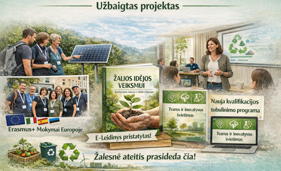 Šiaulių miesto savivaldybės švietimo centras sėkmingai užbaigė Erasmus+ suaugusiųjų švietimo mobilumo projektą „Bendruomenių ekologinio sąmoningumo ugdymas“, kurio tikslas – stiprinti suaugusiųjų švietėjų andragogines kompetencijas ir sudaryti prielaidas efektyvesniam bendruomenių ekologinio sąmoningumo ugdymui. Įgyvendinant projektą, tarptautinėse mobilumo veiklose